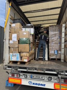 Vandaag hebben onze vrijwilligers net voor de vakantie nog een vrachtwagen vol geladen. Deze rit zijn er voor de universiteit van Antwerpen spullen in België opgehaald welke naar de universiteit in Rivne gaan. Gaan er veel medische spullen naar een ziekenhuis in Irpin. En de rest gaat allemaal naar onze partner stichting in Rivne om soldaten en gezinnen te ondersteunen.