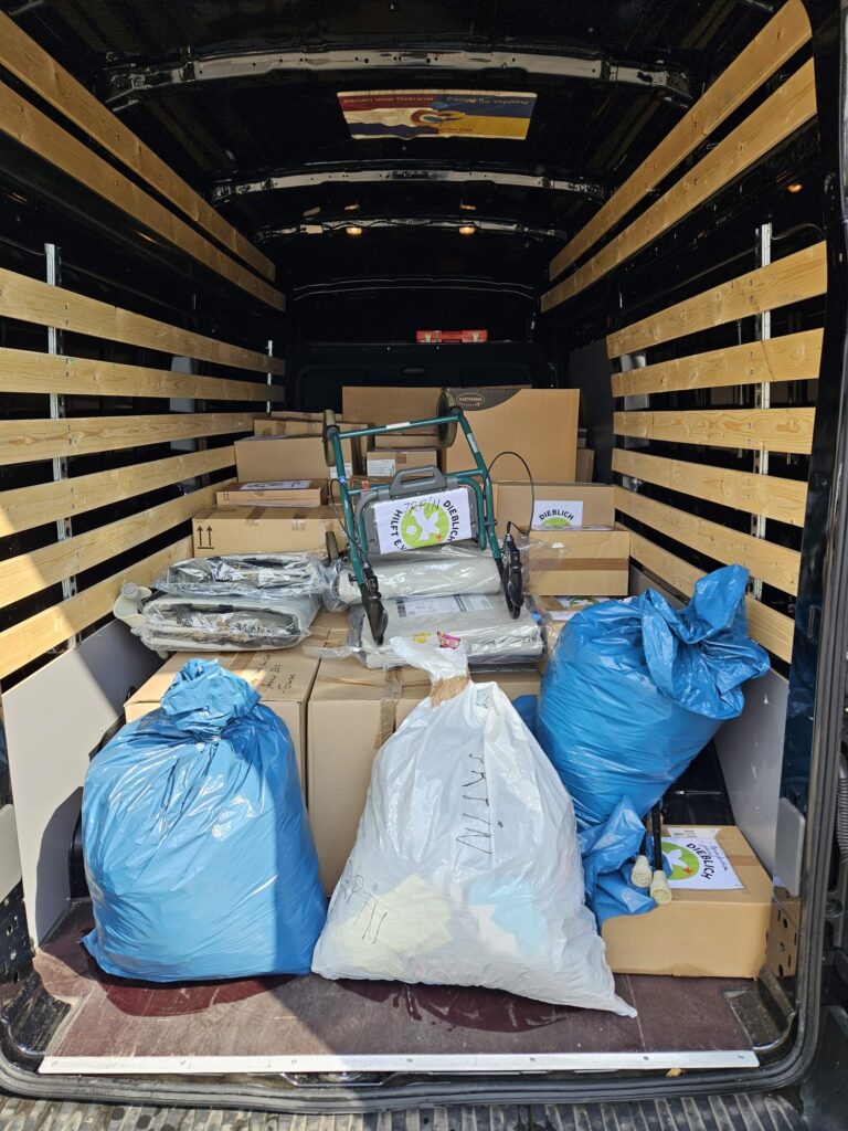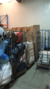 Waar enkele vrijwilligers aan het genieten zijn van een welverdiende vakantie werken er nog voldoende mensen door. Er worden grote ladingen spullen opgehaald, welke op vrijdag weer uitgezocht kunnen worden. En worden er in de opslag dozen gevuld en pallets gestapeld.
